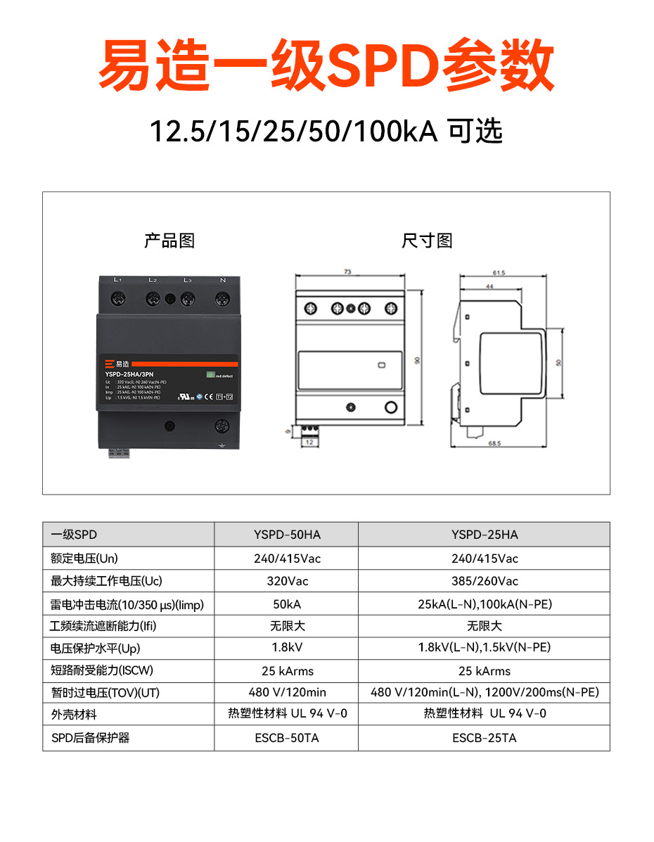- 沖擊電流:12.5/25/50/100kA