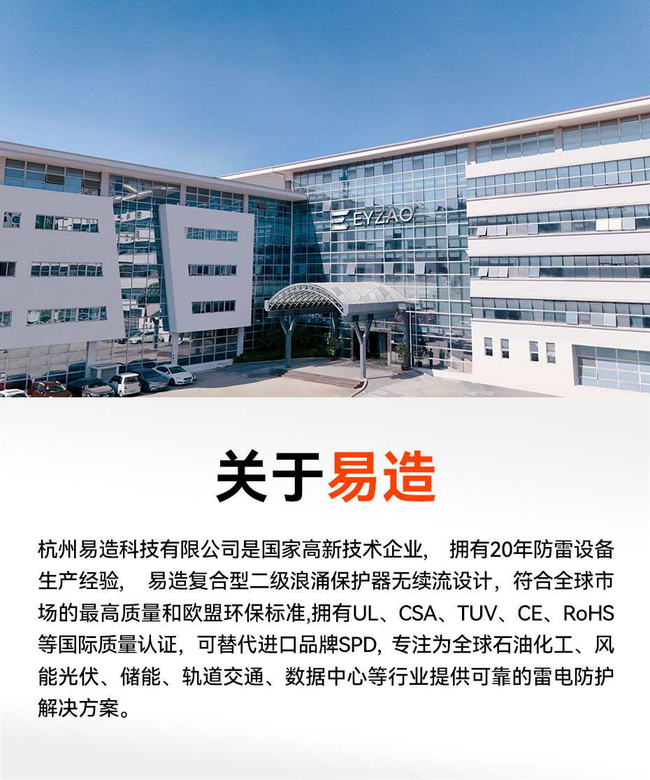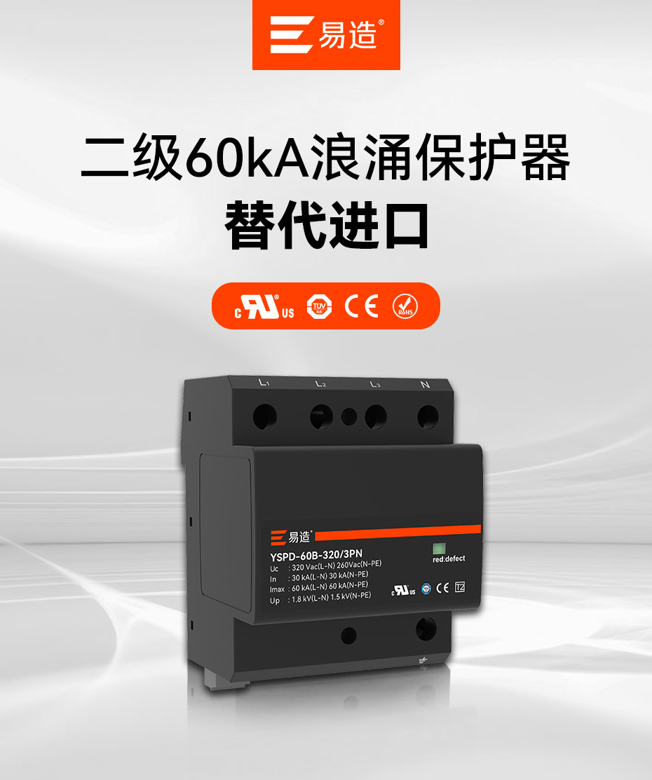 易造T2級(jí)大通流浪涌保護(hù)器,擁有UL、TUV、CE等國(guó)際質(zhì)量認(rèn)證,符合全球市場(chǎng)的最高安全和RoHS歐盟環(huán)保標(biāo)準(zhǔn),可替代進(jìn)口品牌SPD支持出口。