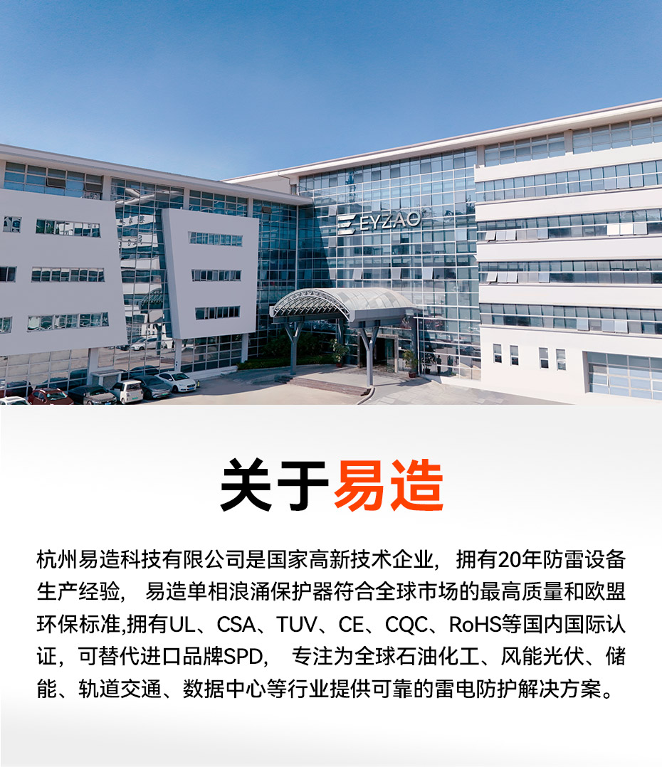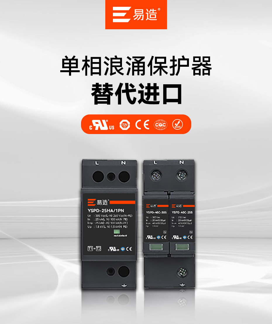 易造T1級、T2級單相浪涌保護器,規(guī)格型號齊全,擁有UL、TUV、CE、CQC等國內(nèi)國際質(zhì)量認證,符合全球市場的最高安全和RoHS歐盟環(huán)保標準,可替代進口品牌SPD,支持出口。