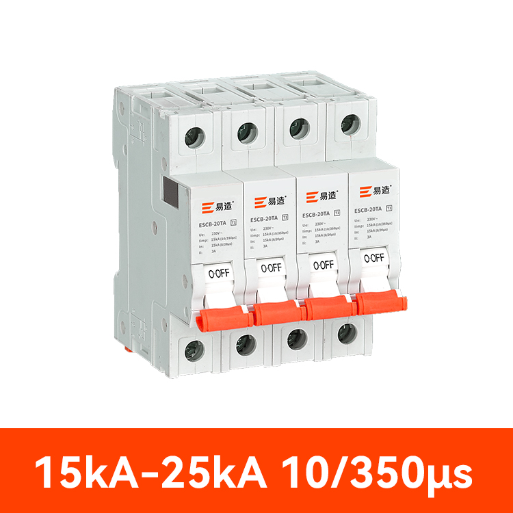 ESCB-25TA防雷后備浪涌保護器依據IEC和GB標準設計,采用主回路脫扣技術,通常用于保護Iimp為25KA的SPD,可切斷幅值高達100KA的高短路電流,并且可在極短時間內切斷3A以上的低短路電流,具有高短路分斷,低短路瞬動,電涌耐受能力高,殘壓低,尺寸小,可監(jiān)控等優(yōu)點,廣泛運用于配電柜,配電箱,低壓柜SPD后備防護上。