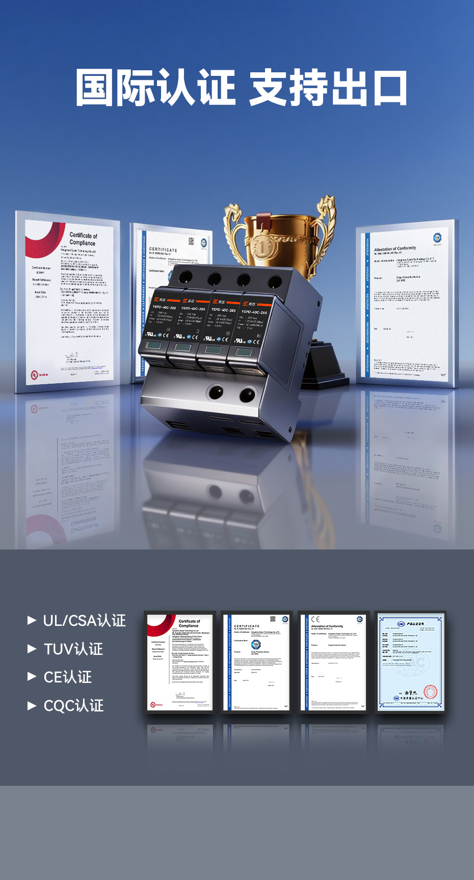 易造認(rèn)證浪涌保護(hù)器規(guī)格型號齊全,滿足全球各個國電力系統(tǒng)單相和三相的防雷保護(hù),符合全球市場的最高質(zhì)量和歐盟環(huán)保標(biāo)準(zhǔn),可替代進(jìn)口品牌SPD,支持外貿(mào)出口定制。